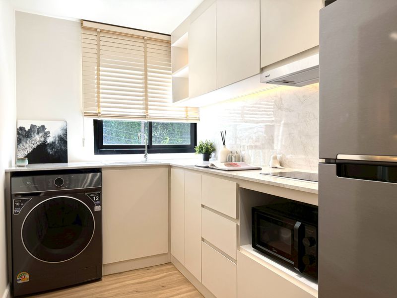 • เครื่องใช้ไฟฟ้าครบ (แอร์ 2 เครื่อง, TV 55”, ตู้เย็น, ไมโครเวฟ, เครื่องซักอบ, เตาไฟฟ้าพร้อมฮู้ด)