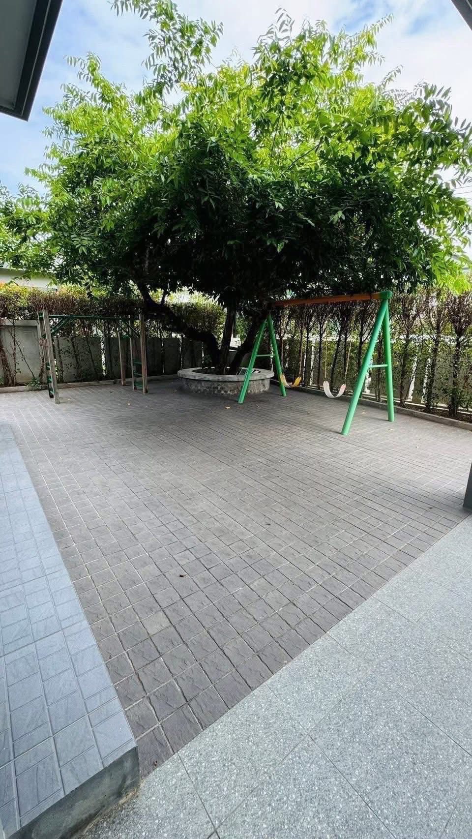 พื้นที่กว้างขวาง มีสนามหญ้า ลานชิงช้า และ monkey bar สำหรับเด็ก ๆ