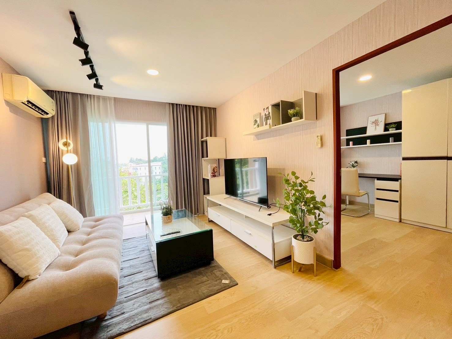 ห้องนั่งเล่นแยกส่วน + ระเบียง
