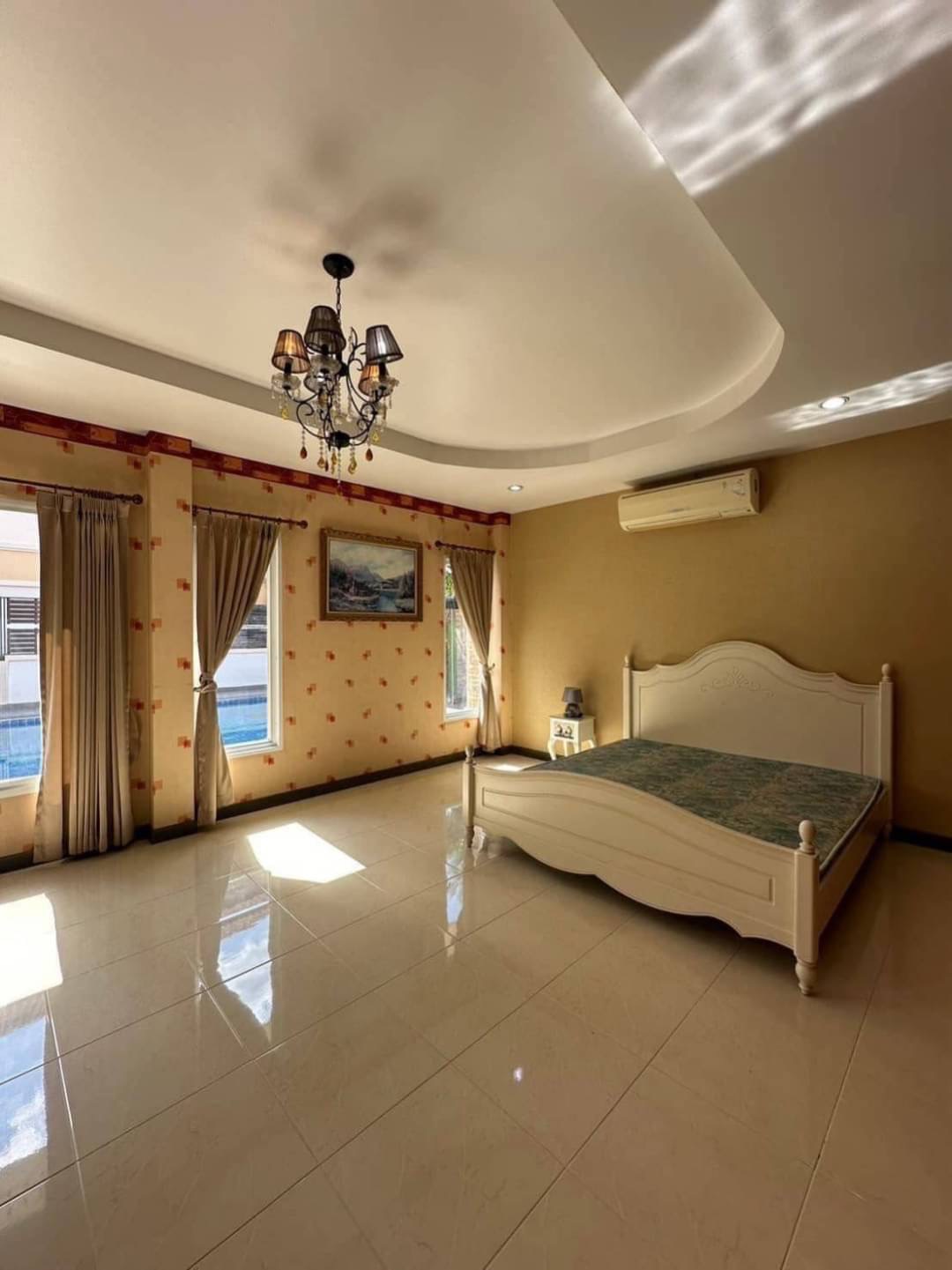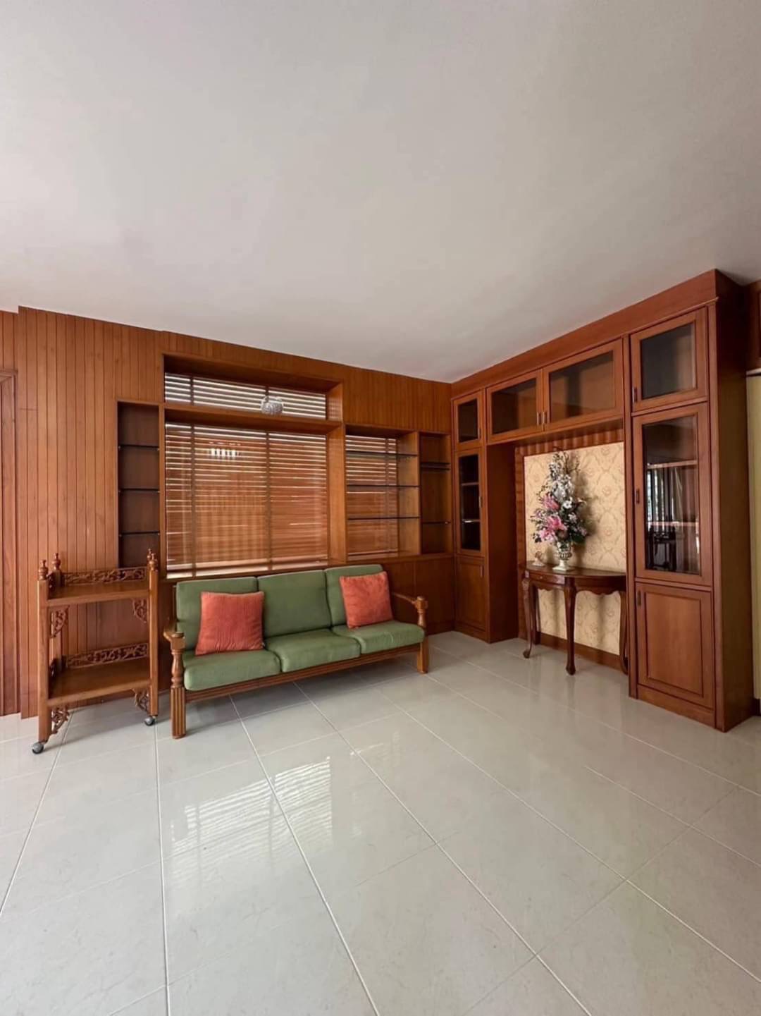 ????5 ห้องนอน ????4 ห้องน้ำ 1 ห้องนั่งเล่น 1 ห้องทำงาน 1 ห้องพระ แอร์ 7 ตัว ทีวี 1