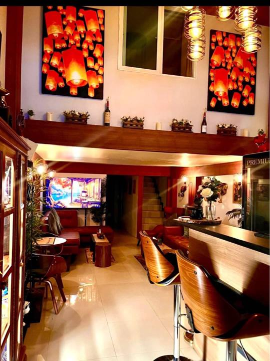 ✅ ชั้น 1 (ชั้นล่าง) พื้นที่นั่งเล่นภายนอก บาร์ เลานจ์ ห้องครัว ห้องน้ำลูกค้า ห้องเก็บของ และห้องนอนพนักงานพร้อมห้องน้ำ/ฝักบัวส่วนตัว