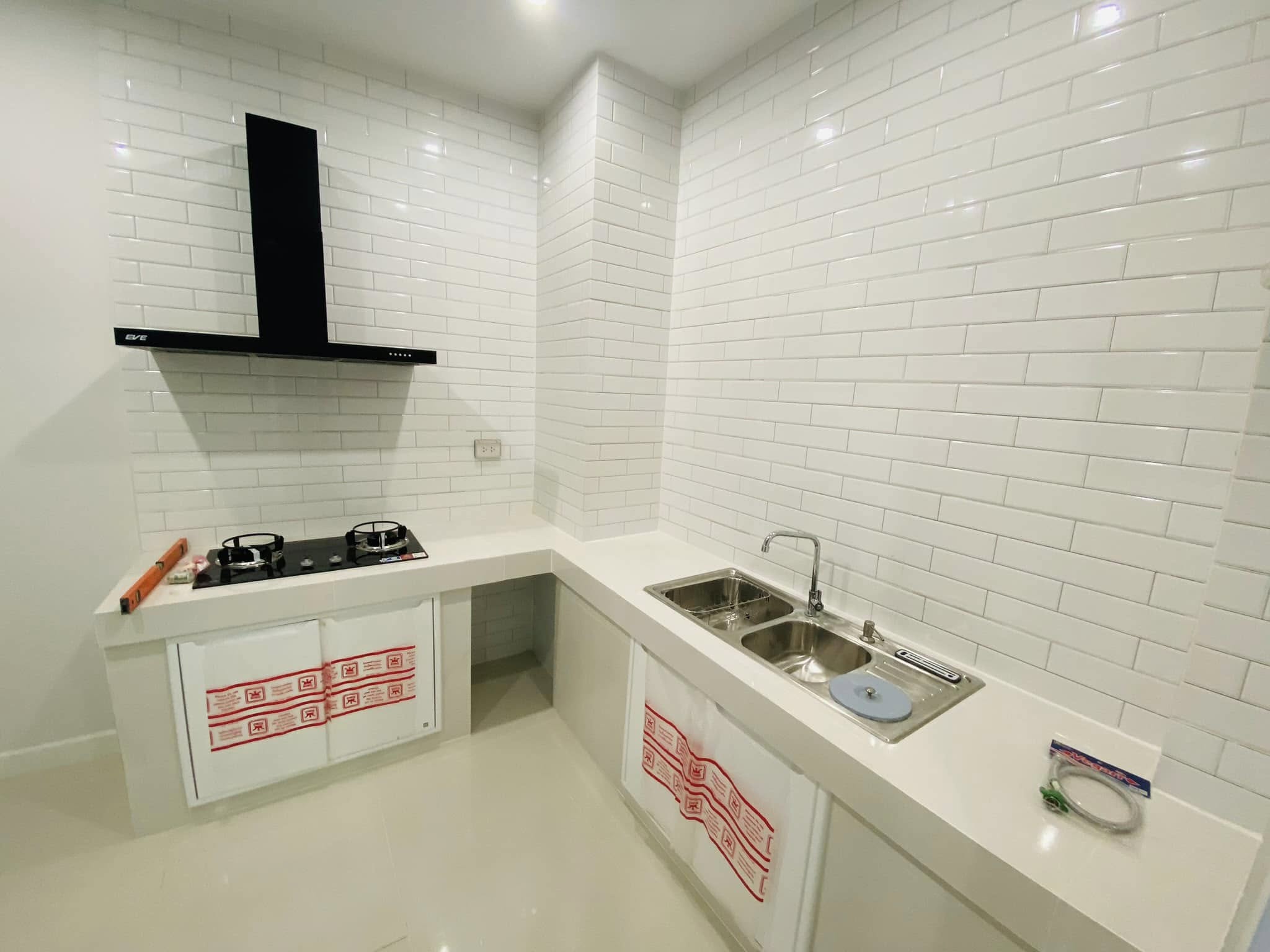 1ห้องครัวปิด (แถมฮูดดูดควัน เตาแก๊สฝัง ซิงค์ล้างจาน) (มีประตูปิดส่วนตัวไม่ต้องกลัวกลิ่นเข้าโซนห้องรับแขก)