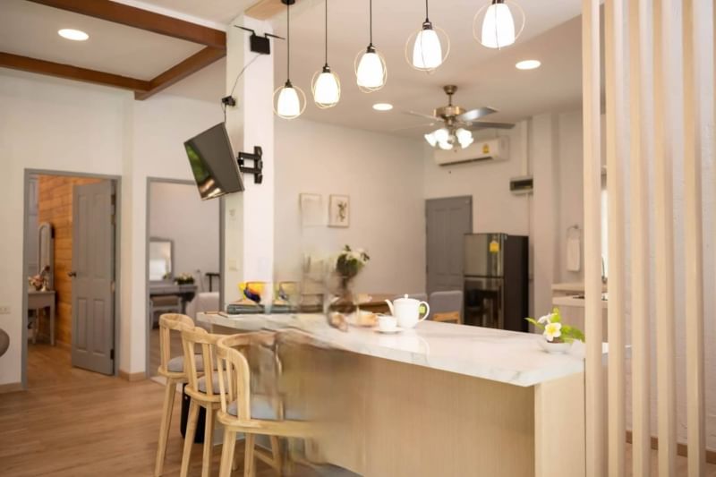 อุปกรณ์อำนวยความสะดวกครบ ทีวี Netflix wifi แอร์ ตู้เย็น เครื่องทํานํ้าอุ่น ไมโครเวฟ กาต้มนํ้า