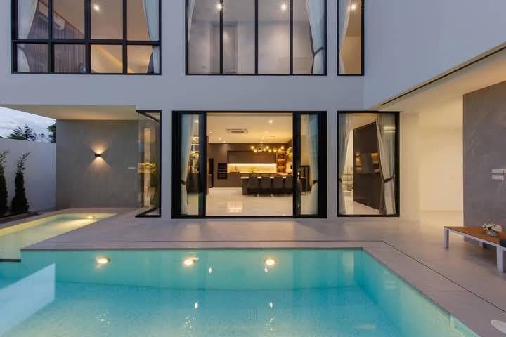 รายละเอียดเบื้องต้น : ที่ดินขนาด 56 ตรว. พื้นที่ใช้สอย 283 ตรม. 4 ห้องนอน 5 ห้องน้ำ 1 ห้องรับแขก 1 ห้องครัวฝรั่ง 1 ห้องครัวไทย สระว่ายน้ำ 3*8 เมตร สระเด็ก 2.2*2 เมตร