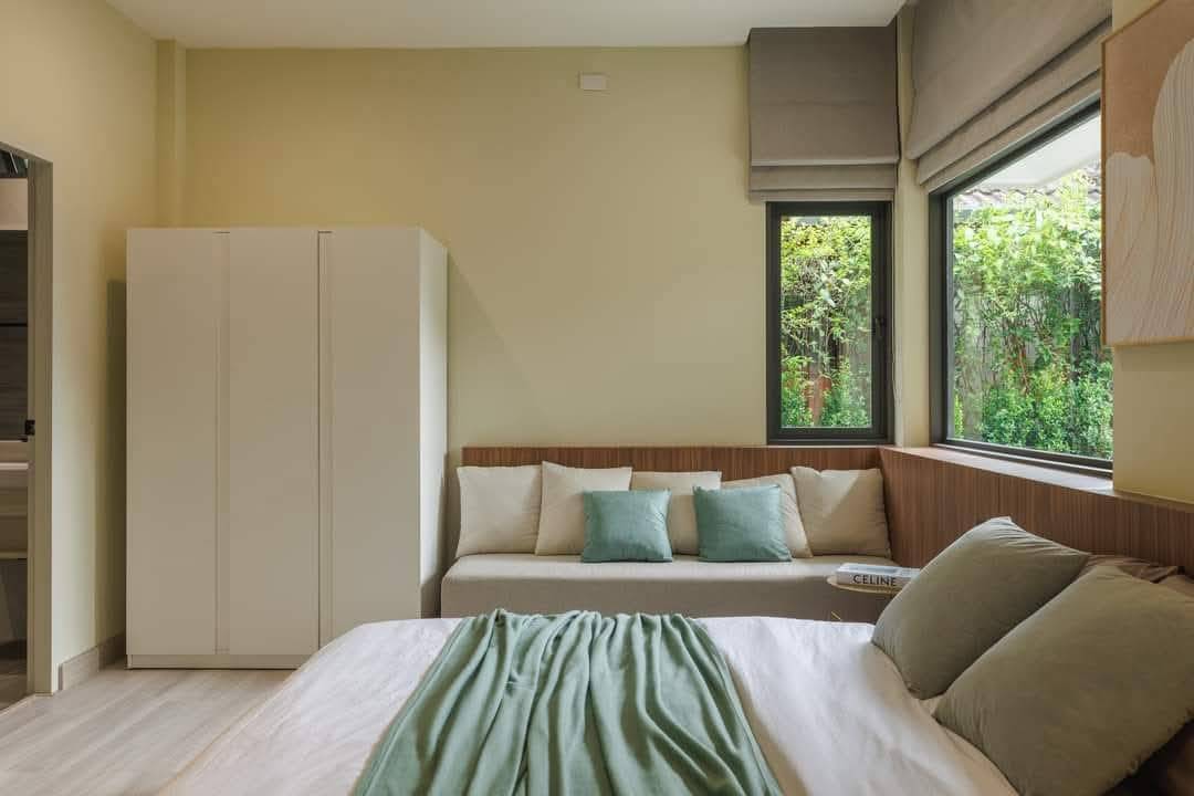 • เพดานสูง โปร่งสบาย พร้อมหน้าต่างรับแสงธรรมชาติและวิวสวน