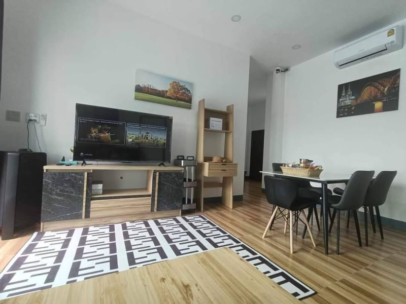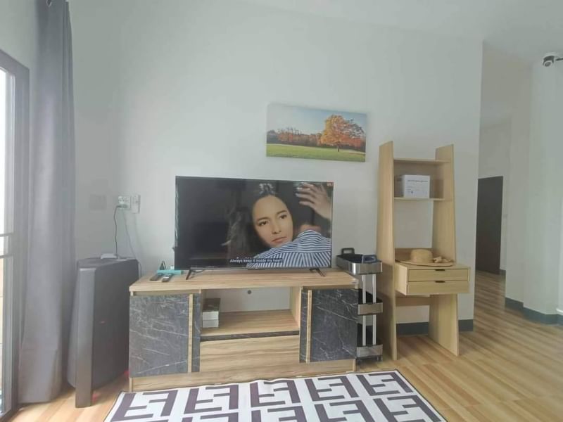1 ห้องนั่งเล่น พร้อมsmart TV 55 นิ้ว ชุดเครื่องเสียงคาราโอเกะ * ห้องน้ำในตัว