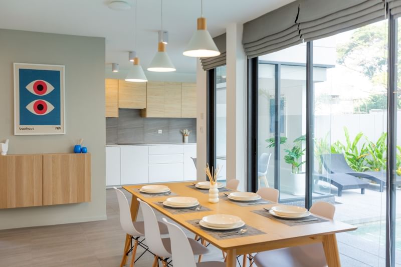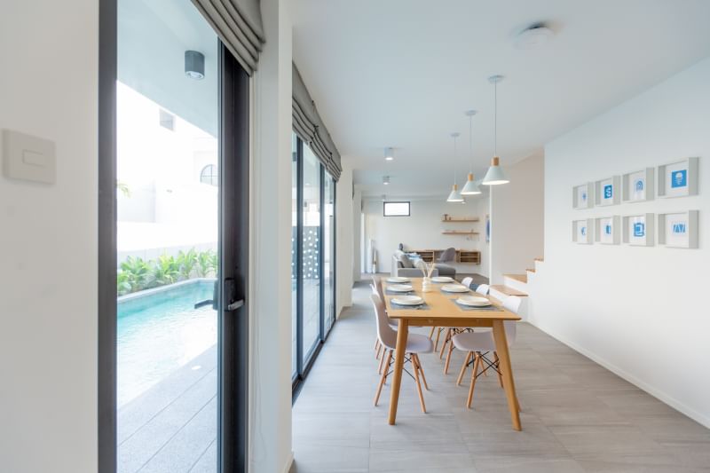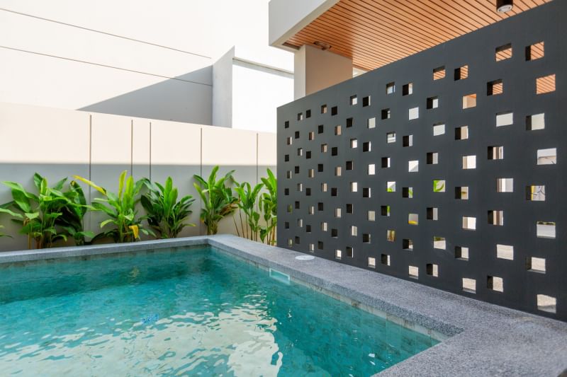 บ้านที่ออกแบบมาอย่างดีเหล่านี้มีสระว่ายน้ำเกลือคลอรีนขนาด 8x4 เมตร ที่กว้างขวางมาก การออกแบบการพัฒนาได้รับการพิจารณาอย่างรอบคอบเพื่อให้มั่นใจถึงความเป็นส่วนตัวสูงสุดสำหรับบริเวณสระว่ายน้ำ