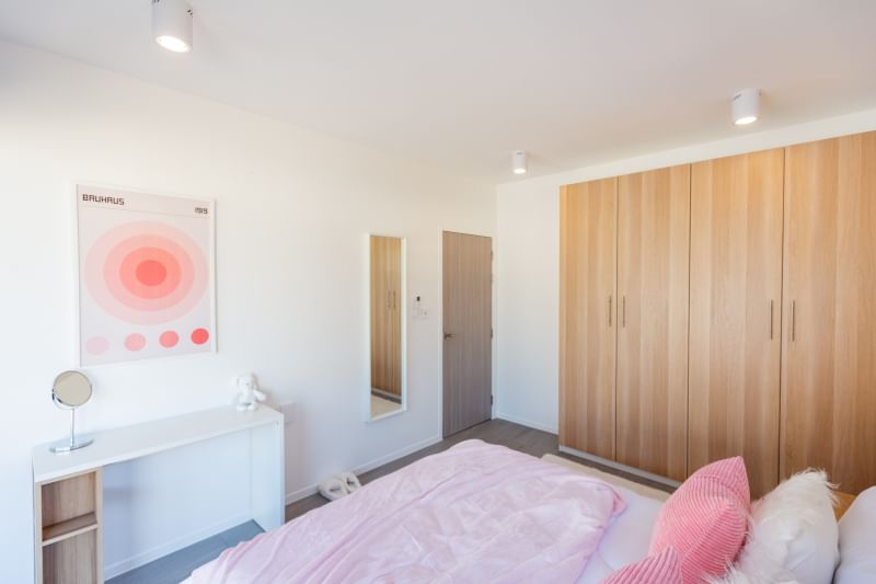 สำหรับผู้ที่ต้องการพื้นที่ชั้นล่างเพิ่มเติม มีห้องอเนกประสงค์ที่สามารถใช้เป็นสำนักงานหรือพื้นที่พิเศษสำหรับห้องเล่นสำหรับเด็ก ขึ้นไปที่ชั้นบนซึ่งมีห้องนอนขนาดใหญ่สามห้องรออยู่ ห้องนอนใหญ่มีห้องน้ำในตัวพร้อมอ่างอาบน้ำ และห้องนอนอีก 2 ห้องสามารถมองเห็นวิวสระว่ายน้ำได้ นอกจากนี้ยังมีระเบียงกลางแจ้งส่วนตัวที่คุณสามารถชมวิวสระว่ายน้ำได้