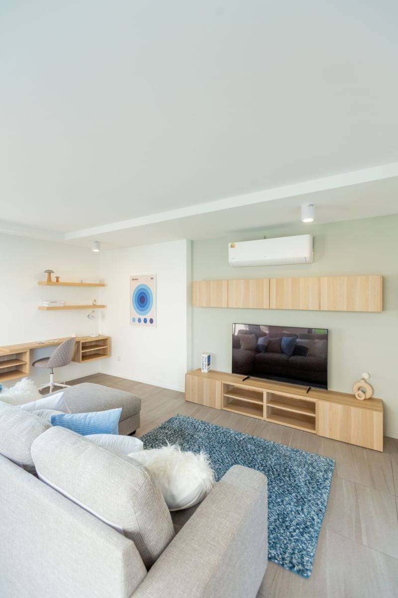 คุณจะพบพื้นที่ระเบียงกว้างขวางเพื่อเพลิดเพลินกับพื้นที่กลางแจ้ง ภายในคุณจะพบกับพื้นที่นั่งเล่นแบบเปิดโล่งที่ออกแบบมาอย่างดีพร้อมห้องครัวแบบตะวันตกขนาดใหญ่ที่ติดตั้งเครื่องล้างจาน เตาอบในตัว และไมโครเวฟ ที่ด้านหลังของพื้นที่ครัว คุณจะพบห้องน้ำแยกต่างหาก/พื้นที่ครัวไทย