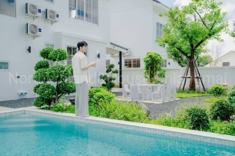 รายละเอียด : พูลวิลล่าสวย บ้านพูลวิลล่าสร้างใหม่ 2 ชั้น สันผักหวาน หางดง สไตล์ญี่ปุ่น
