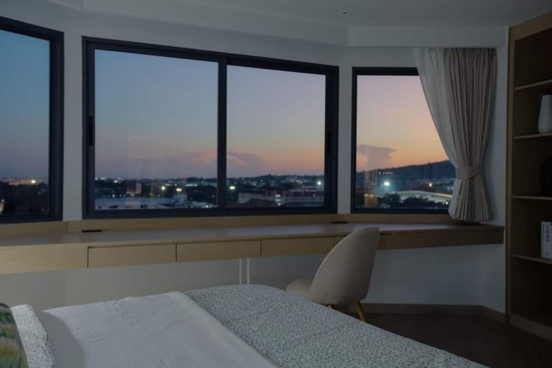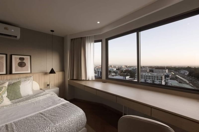 ห้องนั่งเล่นกว้างขวาง โปร่งสบาย พร้อมวิวสุดอลังการ ทั้งดอยสุเทพ คันคลองและสนามบิน