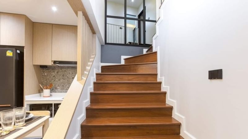 • บันไดภายในห้องเป็นไม้สักแท้