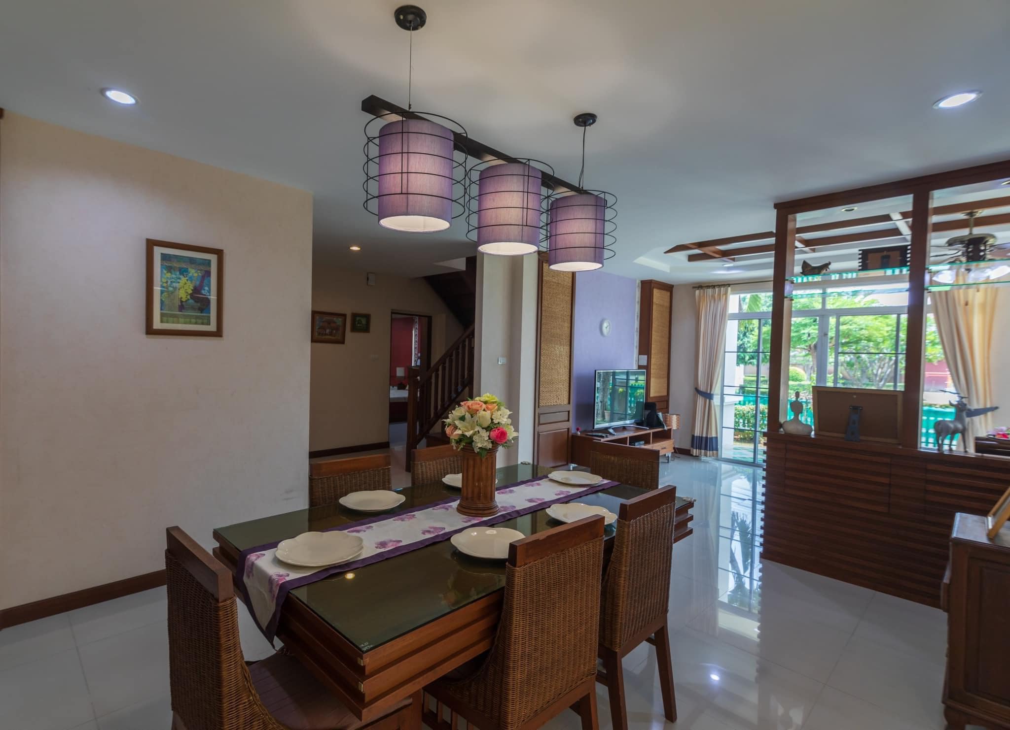คุณสมบัติ : สระว่ายน้ำ , เฟอร์นิเจอร์และอุปกรณ์ภายในครบครัน
