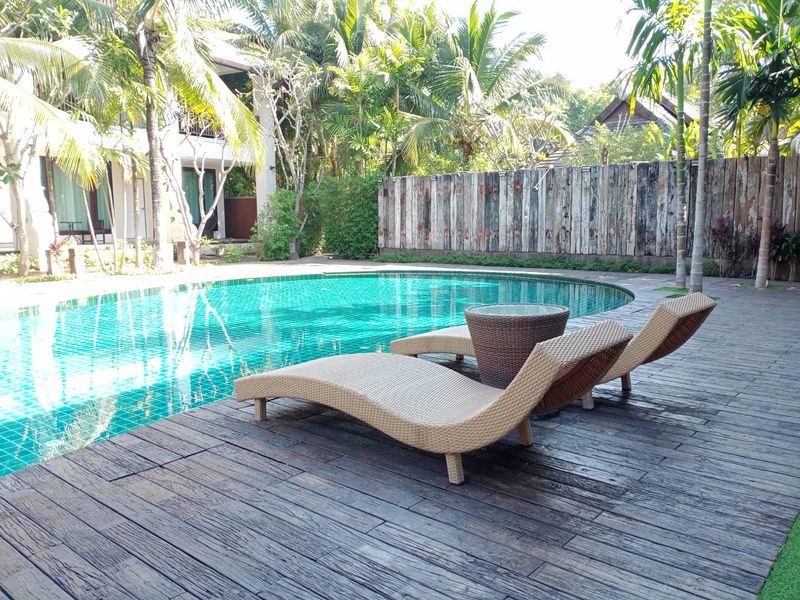 คุณสมบัติ : สระว่ายน้ำ , เฟอร์นิเจอร์และอุปกรณ์ภายในครบครัน