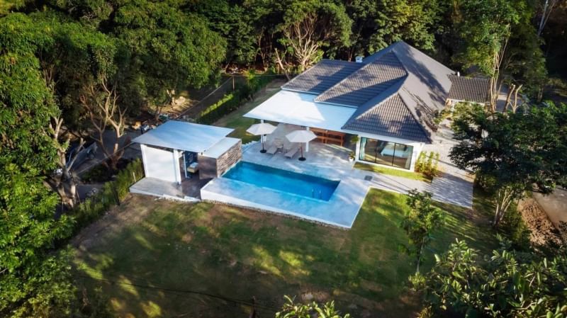 คุณสมบัติ : สระว่ายน้ำ , เฟอร์นิเจอร์และอุปกรณ์ภายในครบครัน