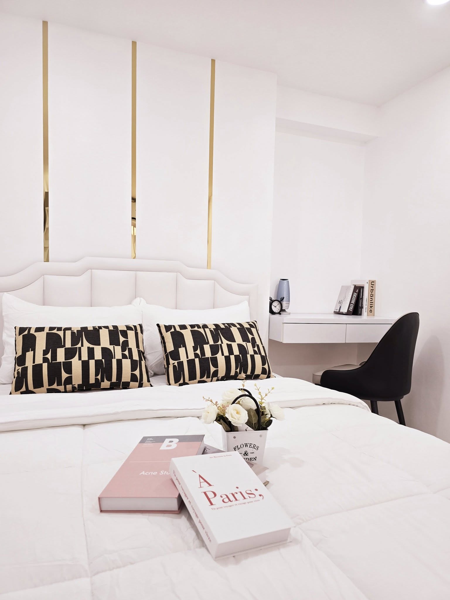เตียง 5 ฟุตห้อนนอนใหญ่ เตียง 3.5 ฟุตห้องนอนเล็ก พร้อมชุดเครื่องนอน