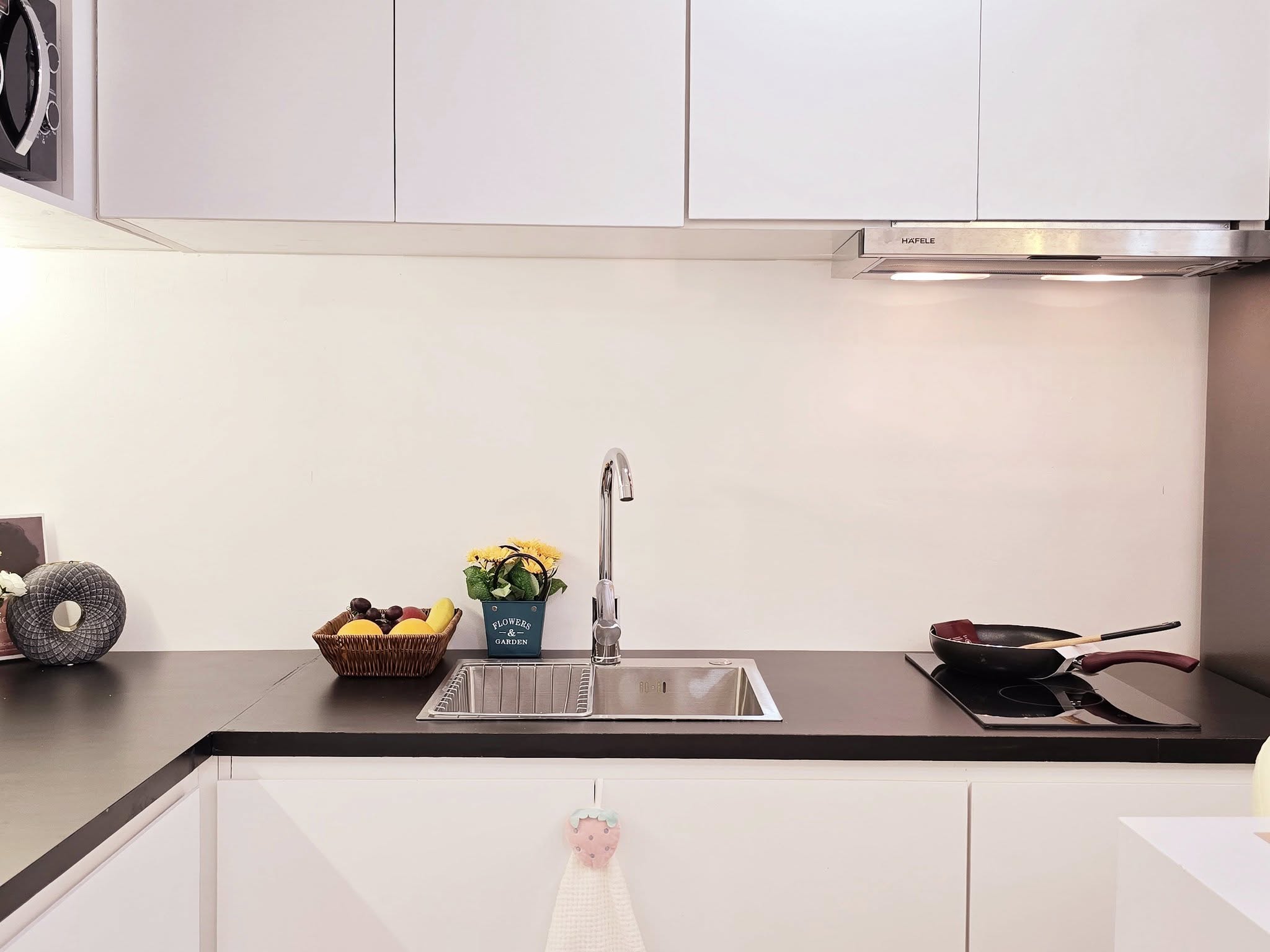 บิ้วอินชุดครัวพร้อมเตาไฟฟ้า และฮูดดูดควัน
