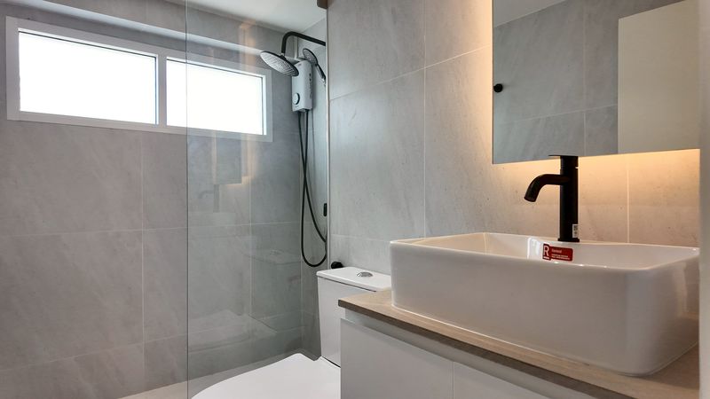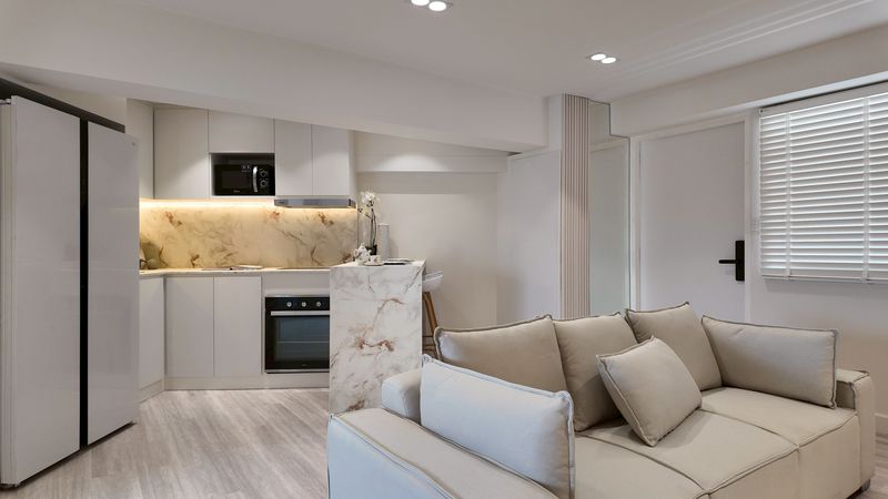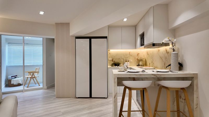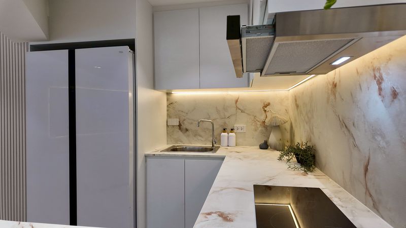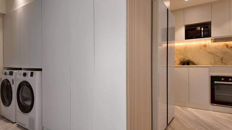 ห้องนั่งเล่นกว้าง ครัวบิวท์อิน + โซนซักอบผ้าแยก