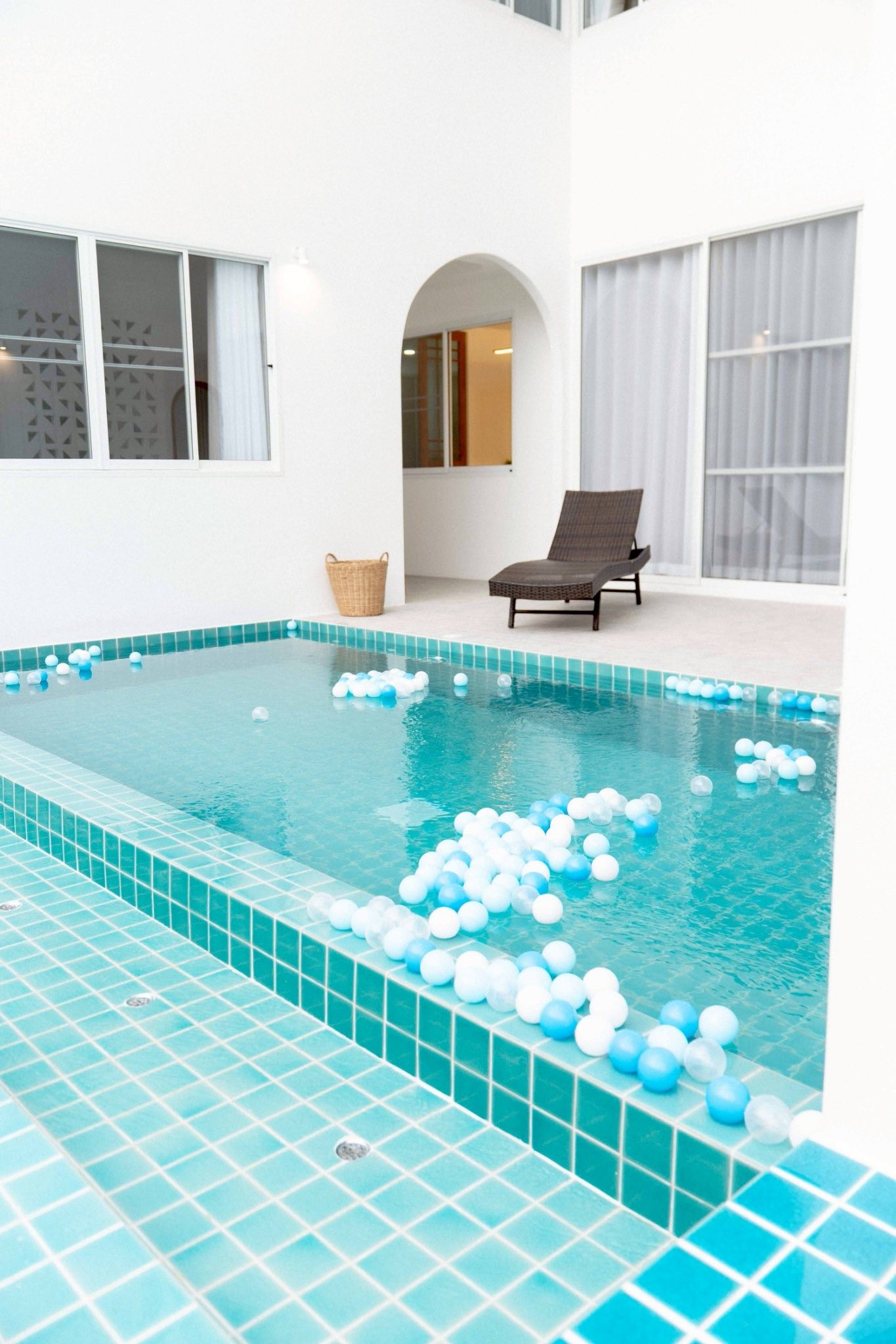คุณสมบัติ : สระว่ายน้ำ , เฟอร์นิเจอร์และอุปกรณ์ภายในครบครัน
